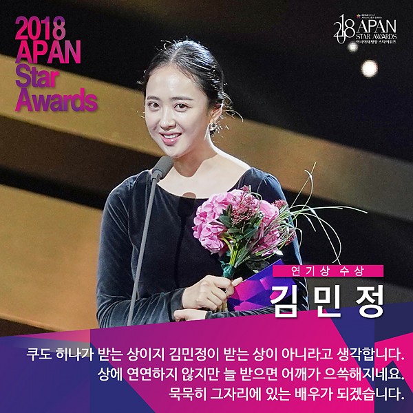 '2018 APAN Star Awards' 여자 연기상 김민정 장소연 페이지 정보 작성자 연매협 작성일18-10-26 14:03 조회10,922회 본문 ▲ 여자 연기상 김민정(tvN '미스터 션샤인') 장소연(JTBC '밥 잘 사주는 예쁜 누나') 이전글 다음글 목록