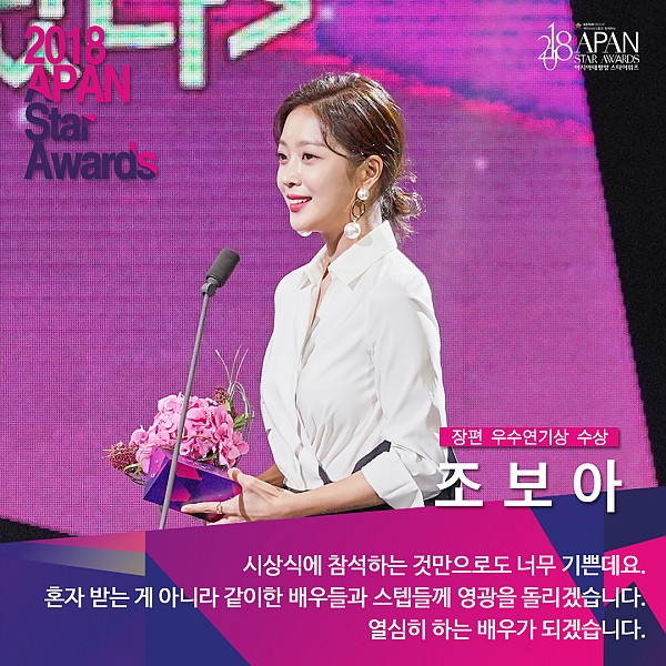 '2018 APAN Star Awards' 장편드라마 여자 우수연기상 조보아 페이지 정보 작성자 연매협 작성일18-10-26 14:05 조회11,888회 본문 ▲ 장편드라마 여자 우수연기상 조보아(MBC '이별이 떠났다') 이전글 다음글 목록