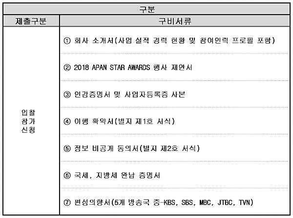 2018 APAN STAR AWARDS(아시아태평양 스타어워즈) 제작대행사 입찰 공고