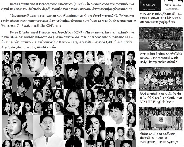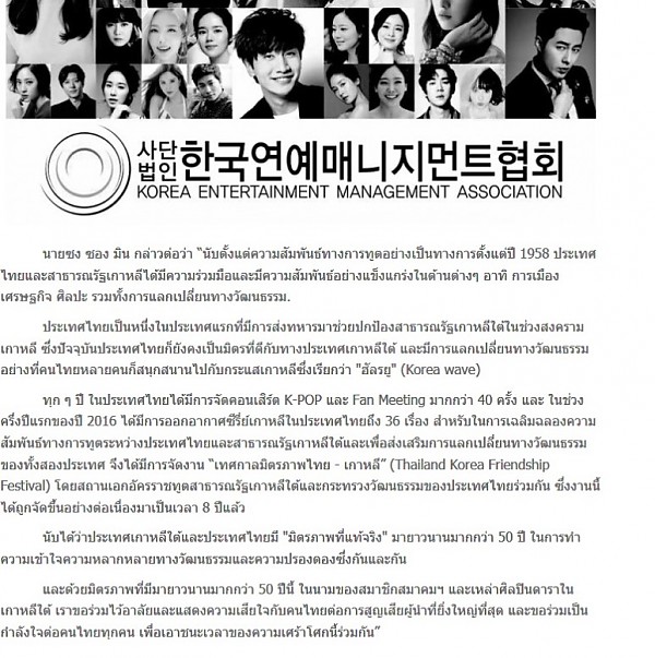 한국 대부분의 스타들과 한솥밥을 먹는 한국 연예매니지먼트협회의 태국 국왕 서거 애도의 글을 몇몇 태국 기자들에게 보내줬다.