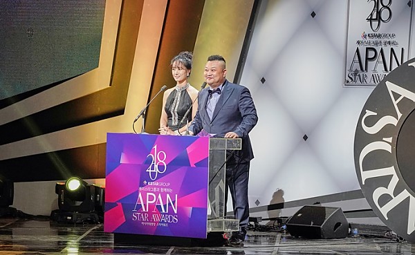 '2018 APAN Star Awards' 베스트 매니저상 시상하는 손성민 회장